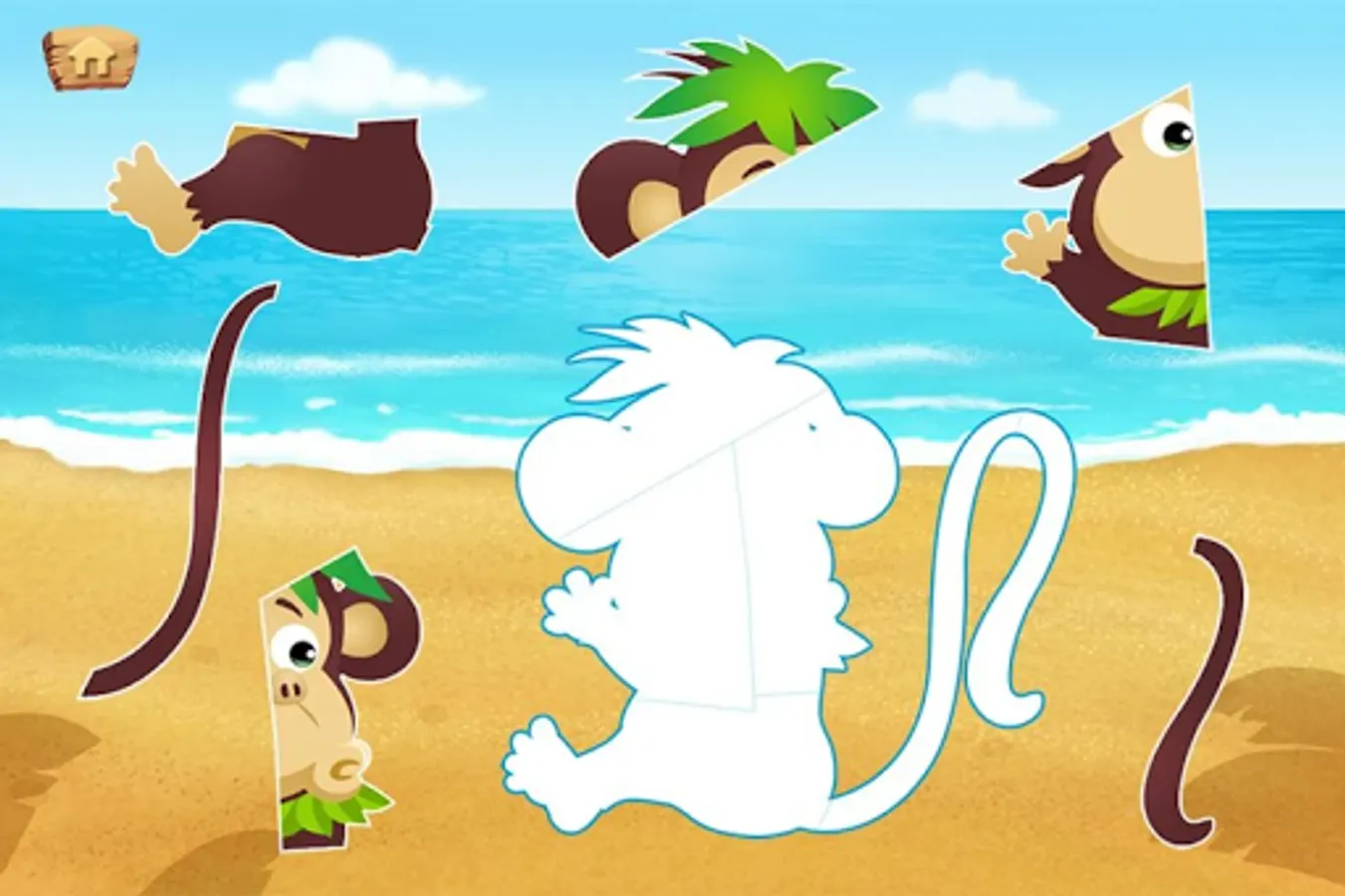 The game’s three difficulty levels get harder gradually; easier levels have easy puzzles with large size puzzle pieces which enables puzzles to be solved even by 3-years-olds with the support of a friendly voice guidance. More difficult levels have 10-piece-puzzles with pieces of various sizes and shapes, which make the game challenging up to 8 to 9-year-old kids as well.