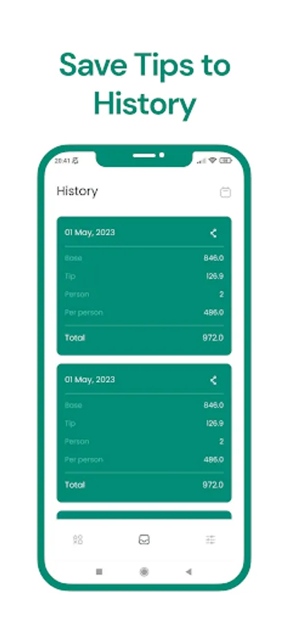 - History tab: Our app features a handy history tab, allowing you to view past bills and tips for easy reference.