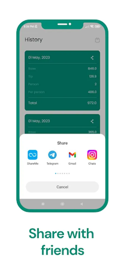 - Calculation results sharing: You can easily share the calculation results with your friends or family via text or email.