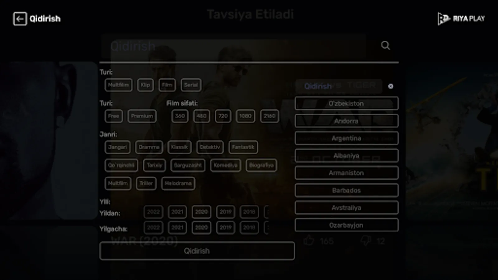 «Riya Play» - это онлайн культурно-развлекательный приложение , цель которого - информировать наших соотечественников за рубежом о жизни Узбекистана, служить мостом общения для узбеков во всем мире, передавать бессмертные традиции и вечные ценности нашего народа будущим поколениям.