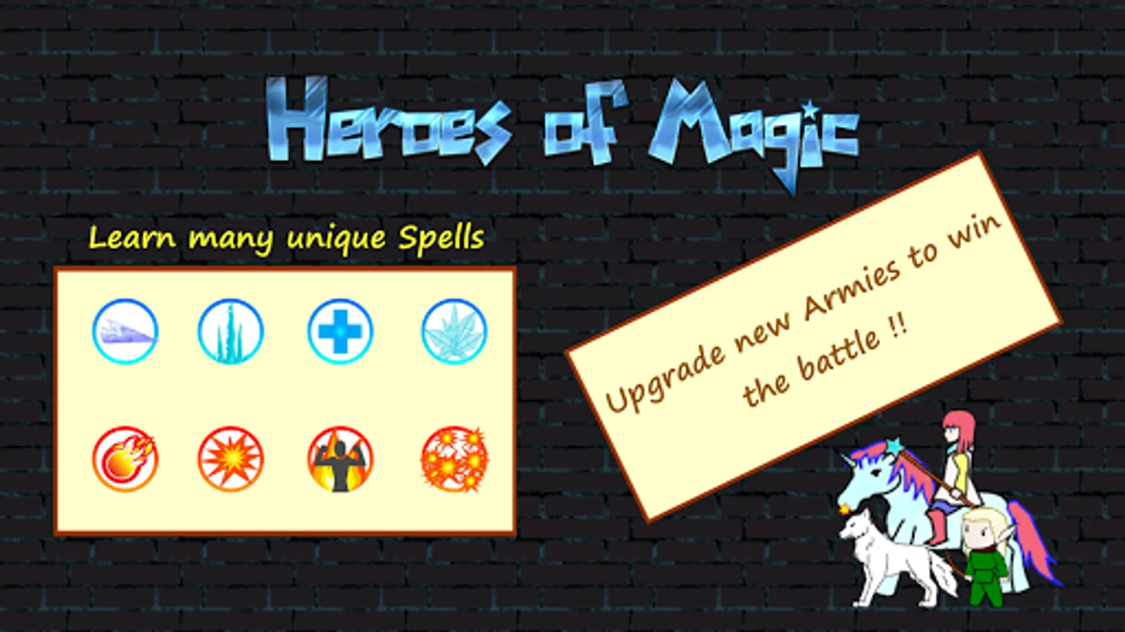 For the initial levels, you will meet a lot of enemies from monster kingdom such as goblin, shaman, ogre, etc. To win the battle you would need to learn new spells and also upgrade new armies.