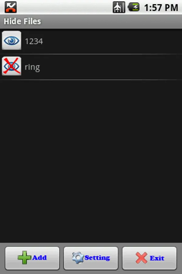 The hidden files are stored in "sdcard/hfile" folder. Don't delete it or you will lost the hidden files.
