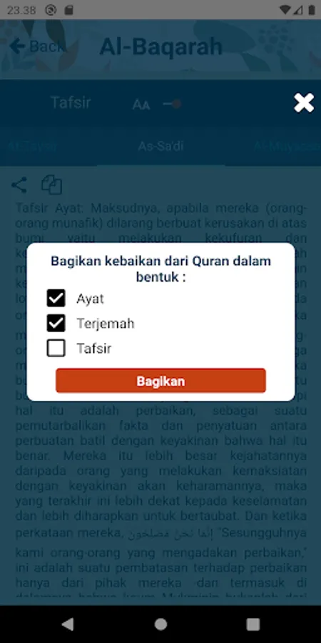 1. Tafsir as-Sa'di translated by Reader Darul Haq. Therefore the copyright of interpretations as-Sa'di interpretation in this application is the property of Darul Haq Library, is not permitted to be distributed except with official permission from the Darul Haq Library.