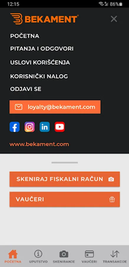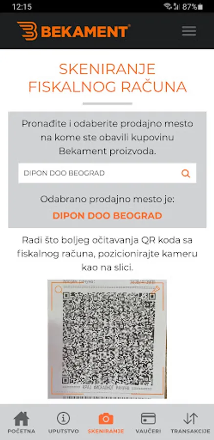 Through the application, the participant of the Loyalty program can at any time scan fiscal accounts and collect points, but also check the total number of their points, monitor the fulfillment of the reward threshold, order gift vouchers from selected partners of the Bekament Loyalty program.