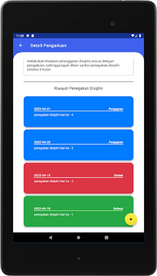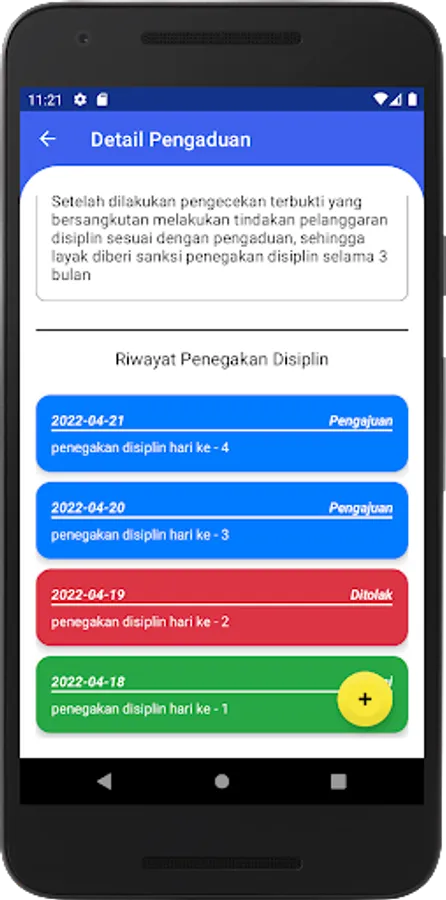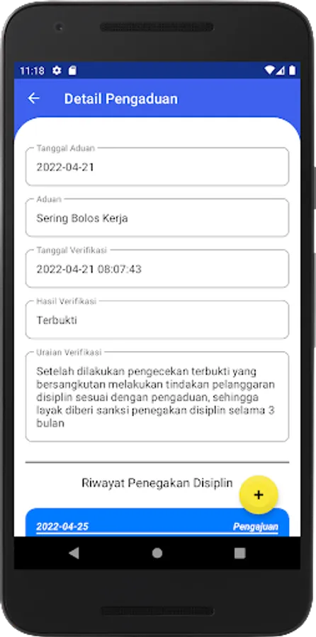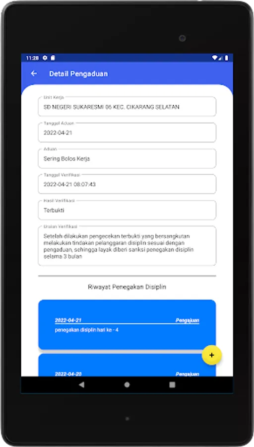 Disciplinary application intended for disciplinary employees who have received verified complaints, where employees must post discipline enforcement according to the instructions given.