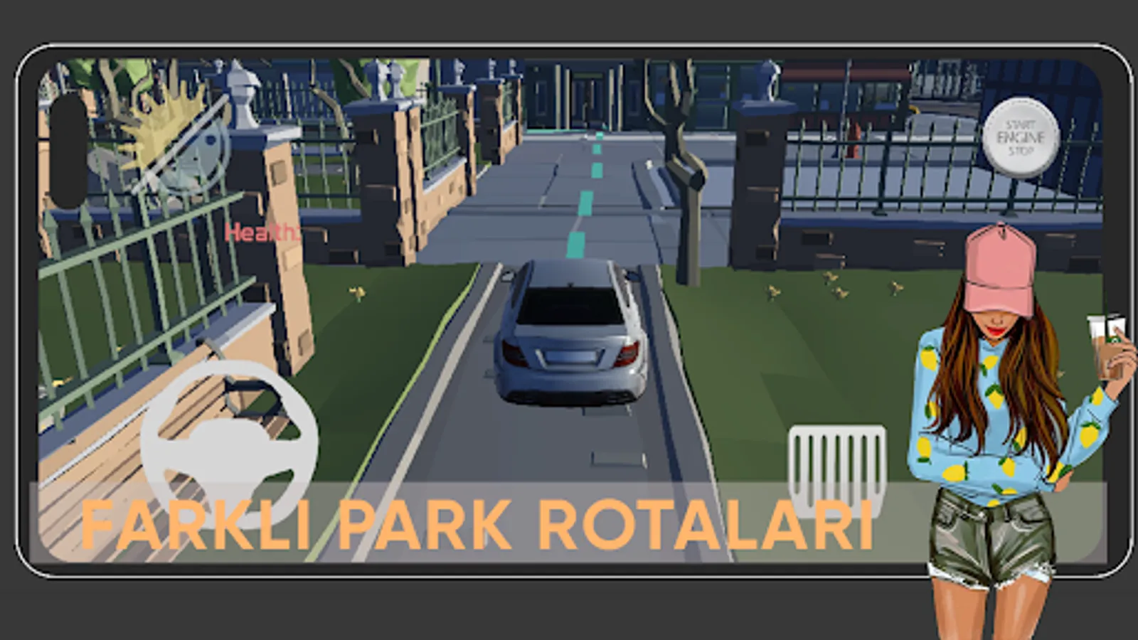 Şehirdeki park yerlerini bul ve arabanı park et arabanı geliştir yeni arabalar al.