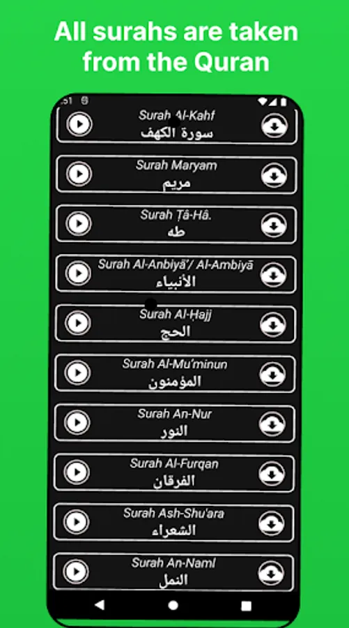 Full Quran MP3 is an app for listening to the Quran on your mobile device. With it, you can listen to all 114 surahs of the Quran in Arabic. All audio files have been recorded in high quality and you will need Internet access to play them.