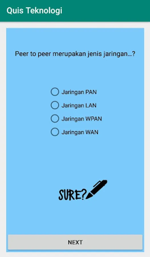 Quiz network technology is a network system today, because the technology as it is growing rapidly is increasing rapidly every year, here are available 4 choice questions where each choice has 40 questions.