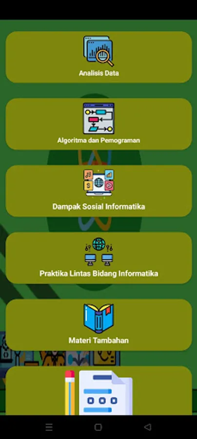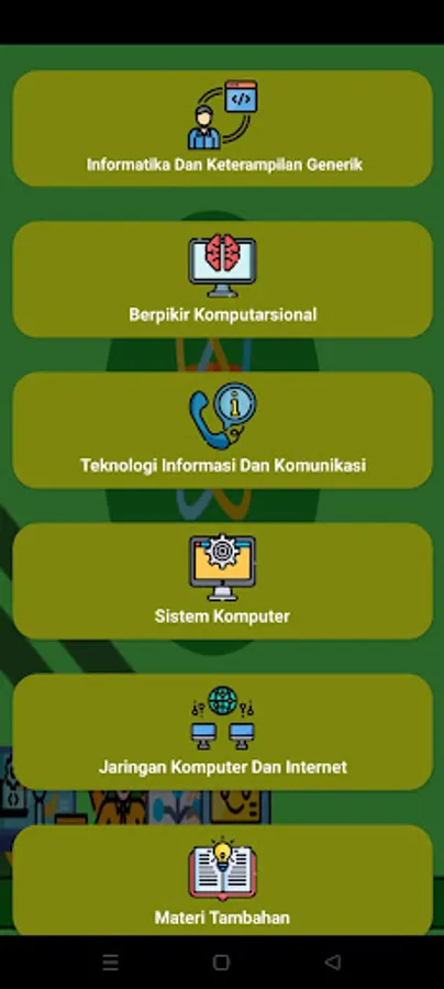 informatics and generic skills, computational thinking, information and communication technology, computer systems, computer networks and the internet, data analysis, algorithms and programming, social impact of informatics, practice across the field of informatics