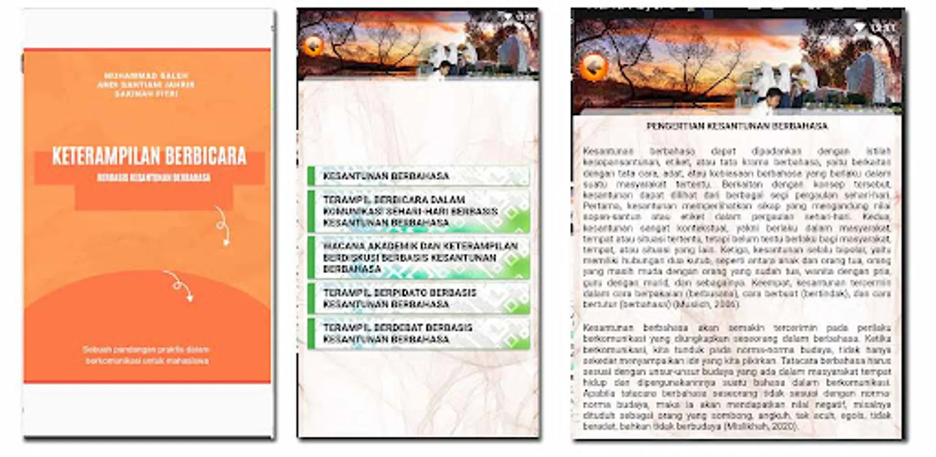 The preparation of this reference book is based more on the facts of the use of language commonly used in various contexts of student life. The facts of the use of language are then packaged with various theories of language skills. In it, the author uses the compilation method, although it is still balanced with efforts to reduce and explain as necessary according to the demands of the syllabus and the social context of students. In particular, in addition to presenting theory, this book also presents the application of theory in language politeness. This is the specialty of this book compared to some of the existing Speaking Skills books.