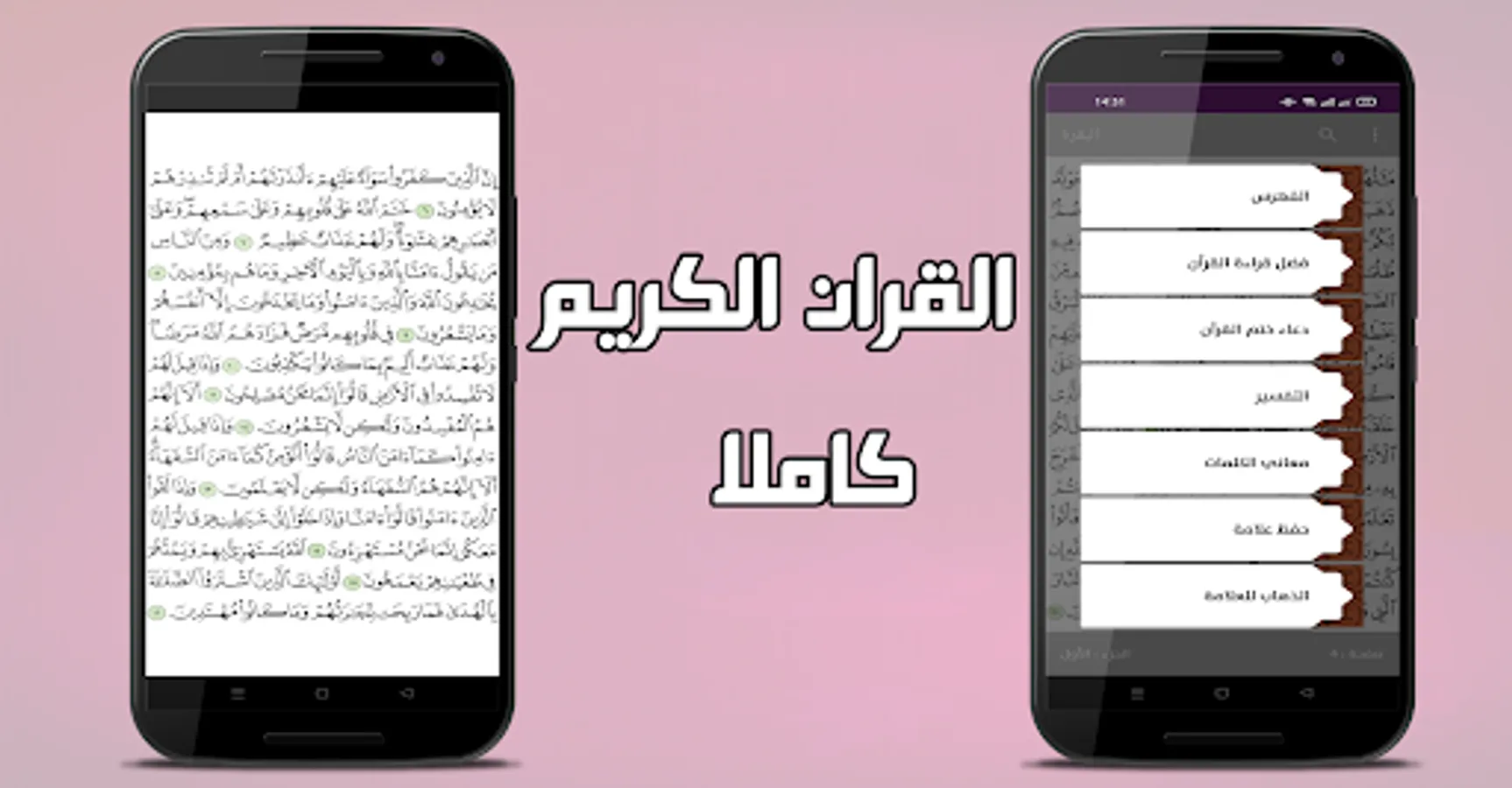 Qur’an reading section. This section contains the entire Qur’an, the entire printed Qur’an, the Qur’an index, interpretation, parsing, and the meanings of the words of the Qur’an.