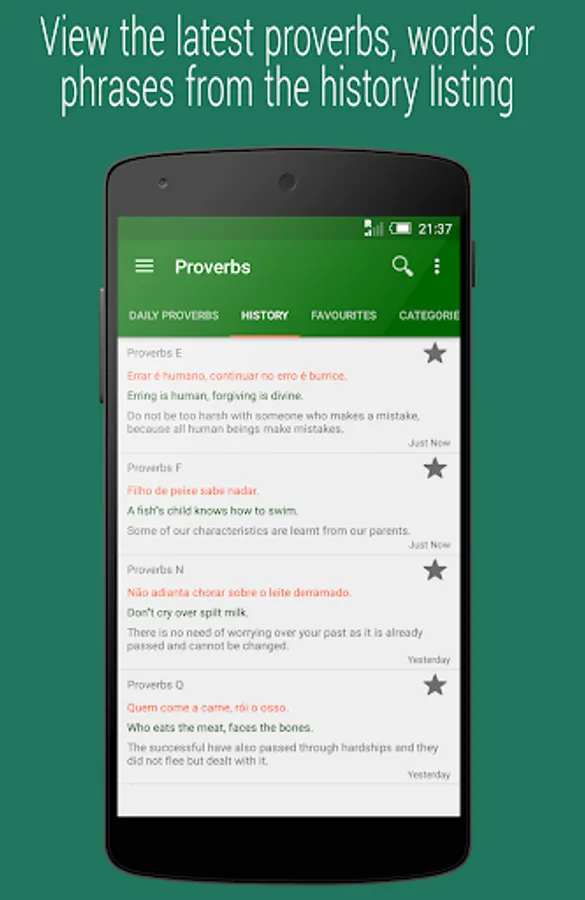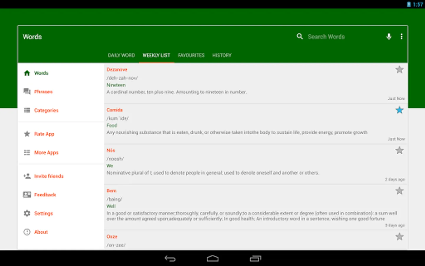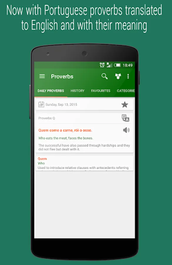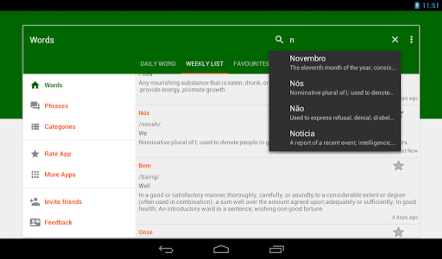 “Daily Portuguese” contains the commonly used Portuguese words and phrases for beginners and intermediate learners. You will receive a notification with a new word or phrase daily. You can practice your speaking and listening skills with the Portuguese pronunciation guide and sounds, wherever and whenever you are. The words are linked to phrases making learning Portuguese much easier as you get along with daily practice and review word usage.