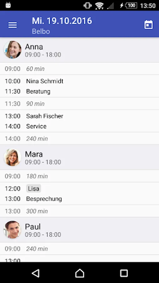 Your Belbo online calendar as clear Android app. See also on the move comfortably the day's events in a mobile optimized view.