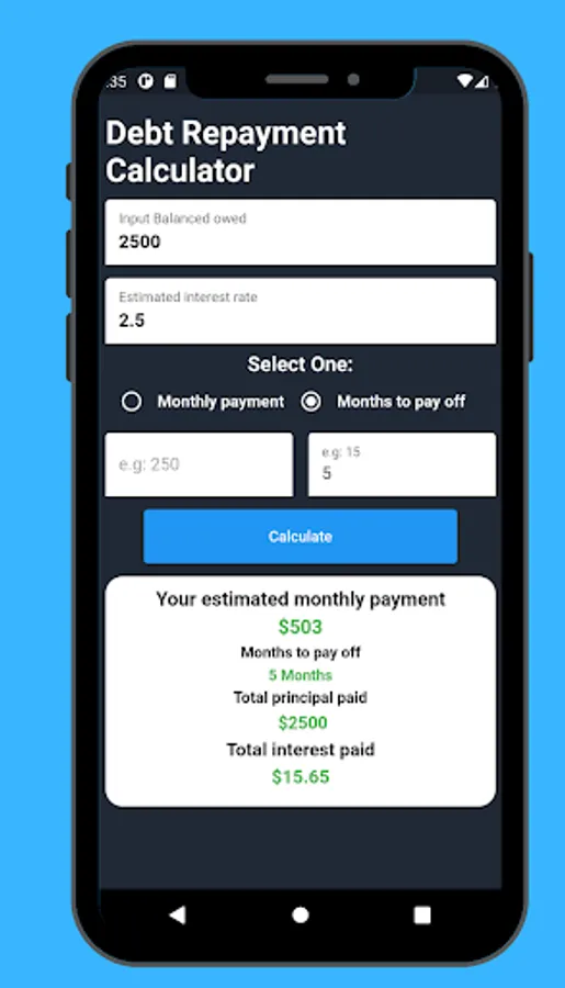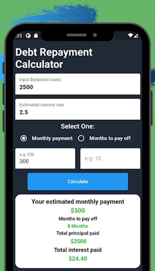 The Debt Repayment Calculator app is here to help you finally get your loans paid off. The app lets you be proactive about paying back your loans by figuring out the easiest way on how to pay them off within a certain time-frame that suits you best. Planning a budget with a tool like a borrowing calculator can help you to pay down any debt.