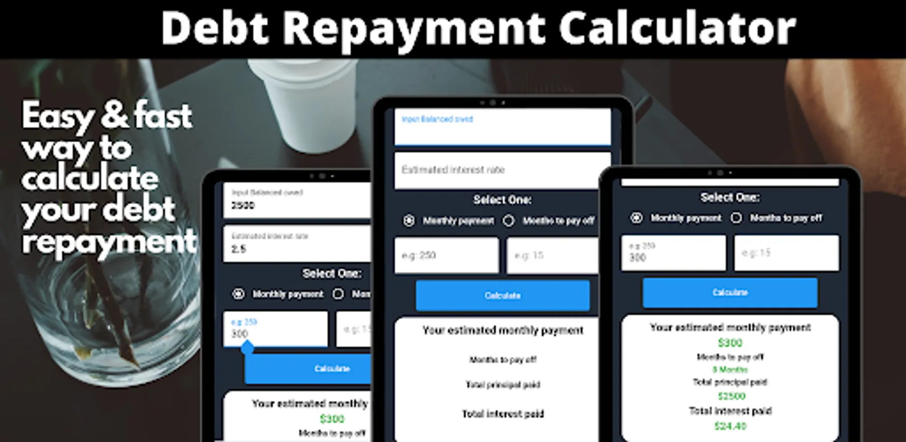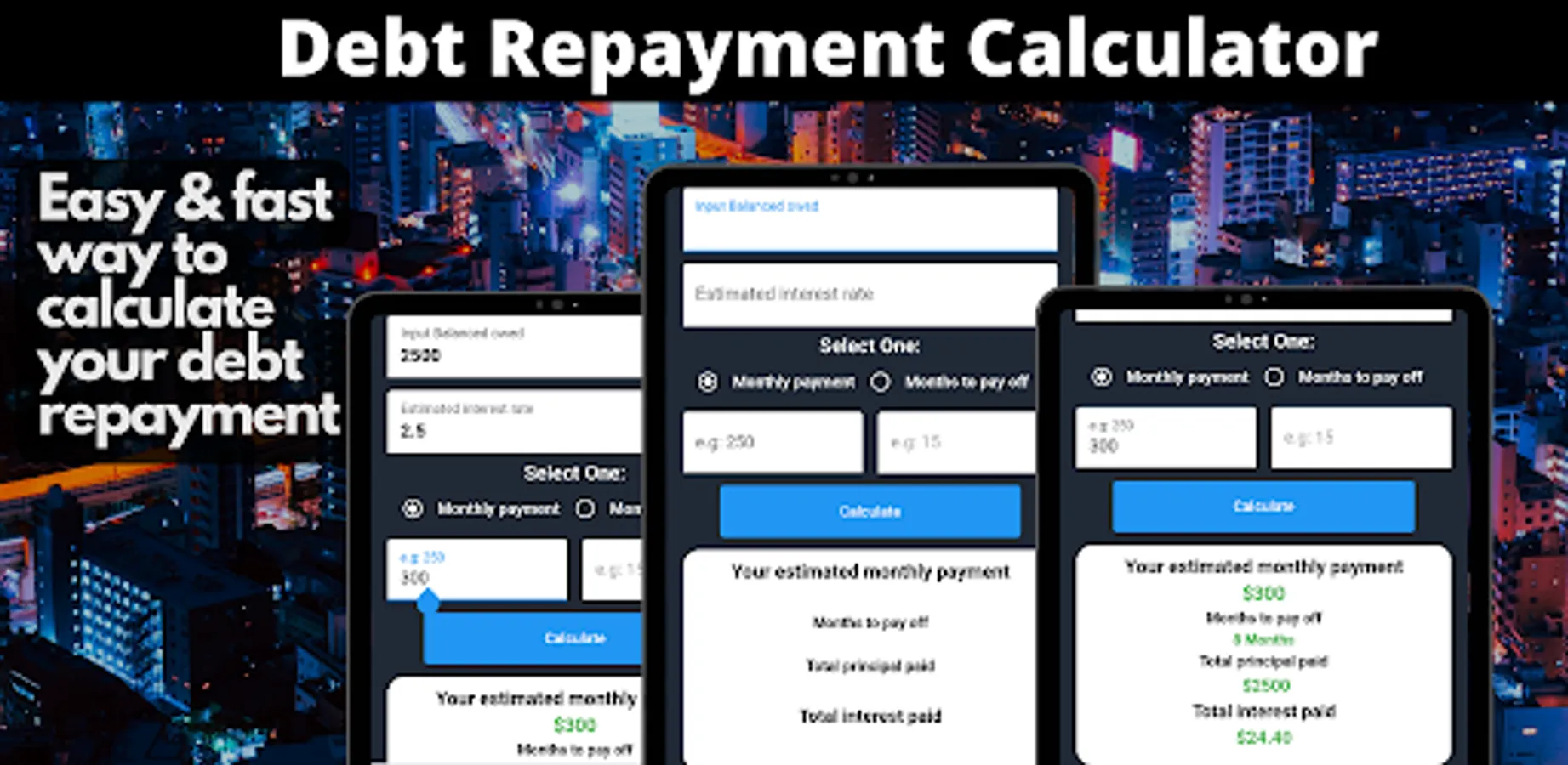 This debt repayment calculator is designed to help you focus on the most important part: paying off your debt.