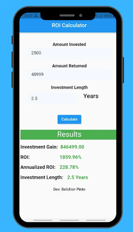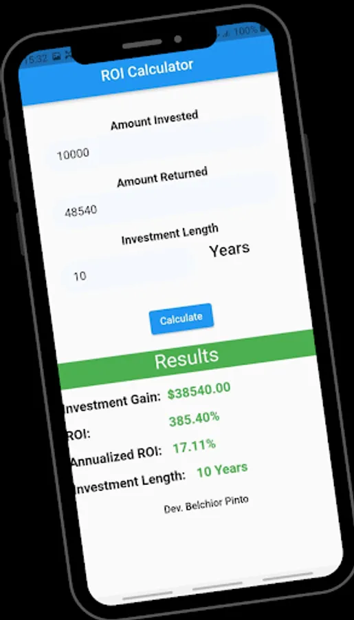 ROI Calculator is the easiest and excellent app for calculating the profit percentage from an investment. With an Annualized ROI