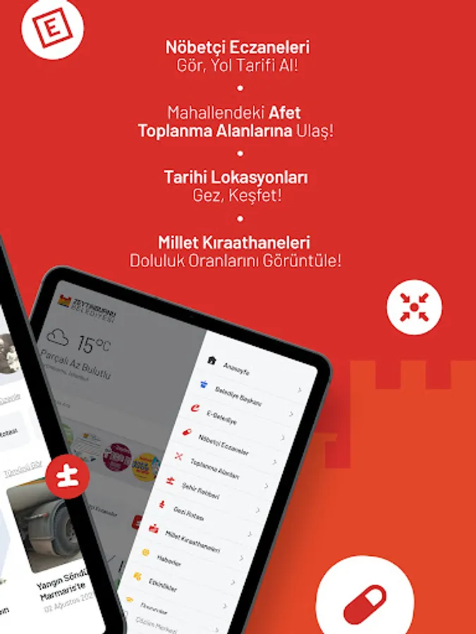 E-Belediye, Nöbetçi Eczaneler, Toplanma Alanları, Şehir Rehberi, Gezi Rotası, Millet Kıraathaneleri ve Zeytinburnu Belediyesi markaları hakkında bilgi alabilirsiniz.