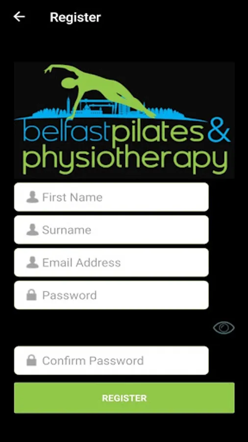 Users are asked to contact Belfast Pilates & Physiotherapy directly before registering an account. Those who have not yet booked their consultation with the company will not be able to view or book sets.
