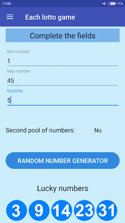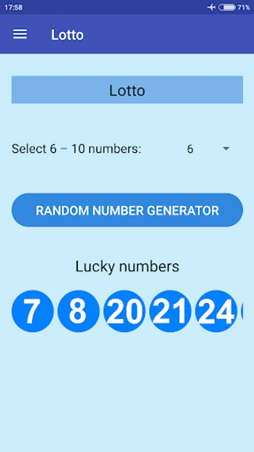 The application is made to help you pick random numbers but does not encourage to play the lottery or any kind of gamble.