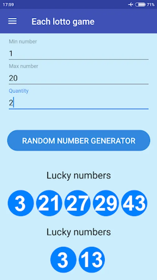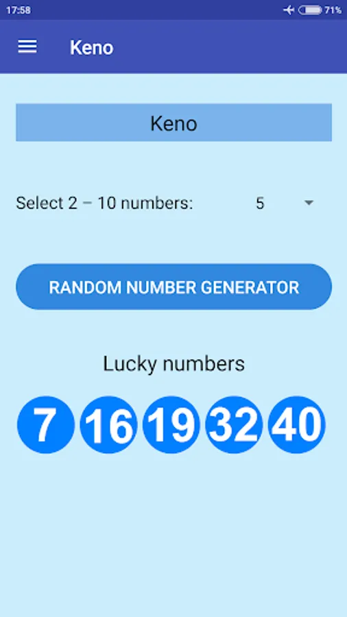 Met deze gratis applicatie kun je willekeurige nummers kiezen voor de spellen Lotto, EuroMillions, Keno, Pick 3 en elke andere lotto game.