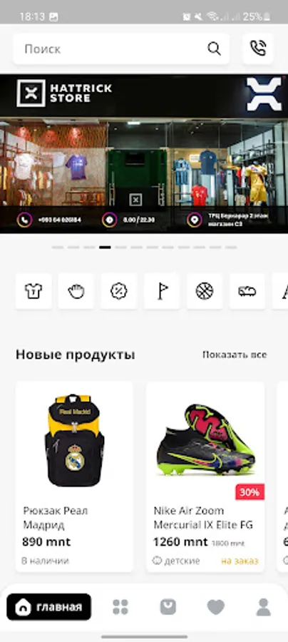 The HATTRICK STORE football store was founded in 2018 and since that time we have not ceased to please our football fans. In 2020, the first store was opened in the top location of the Berkarar shopping mall. Every season we update our football attribute for our twelfth players. In this application you will find everything you need to play football: balls, retro uniforms, football shoes, your favorite team's uniform, thermal underwear and much more. Each product in our store is carefully checked for compliance with quality standards, so you can be confident in your purchase. We deliver throughout Turkmenistan, as well as to many countries of the world.