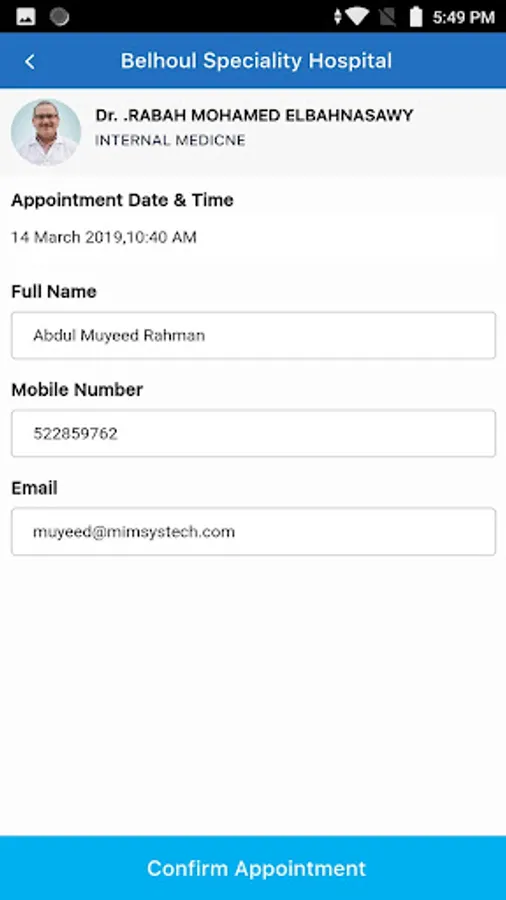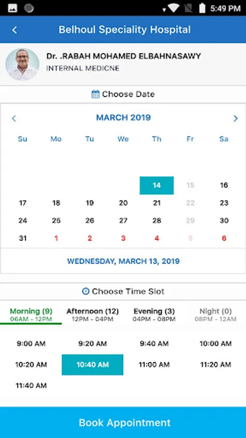 ● Search for available appointment slots of the BSH doctors and book appointments with them.