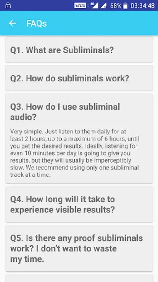 Read more about Subliminal affirmations and how they work in the FAQ section of the app.