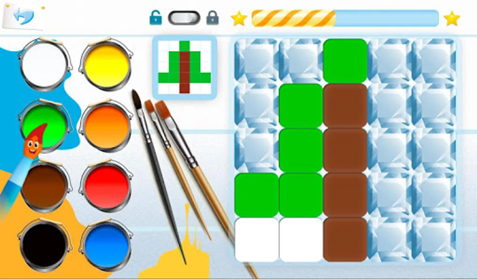 At the top of the screen, you can set a lock for properly painted drawing elements. This makes it easier for younger children to finish the task faster.