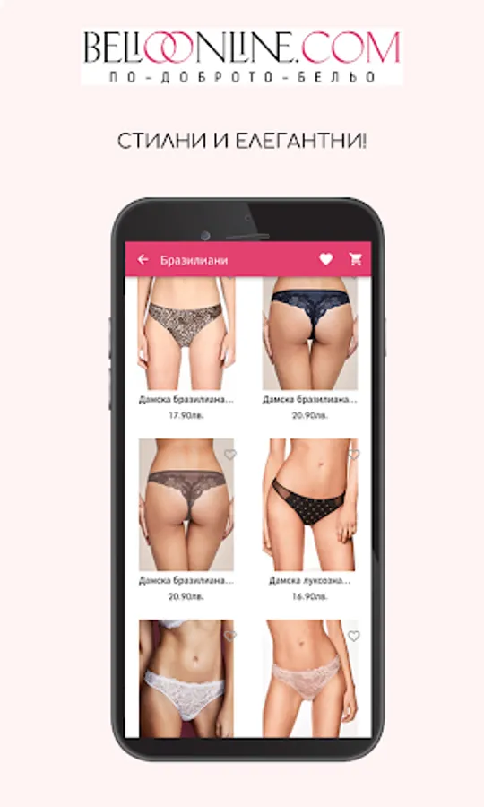 Belioonline.com е български онлайн магазин за бельо, създаден през 2011г. Предлагаме Ви бързо и удобно пазаруване през вашия сматфон 24/7.