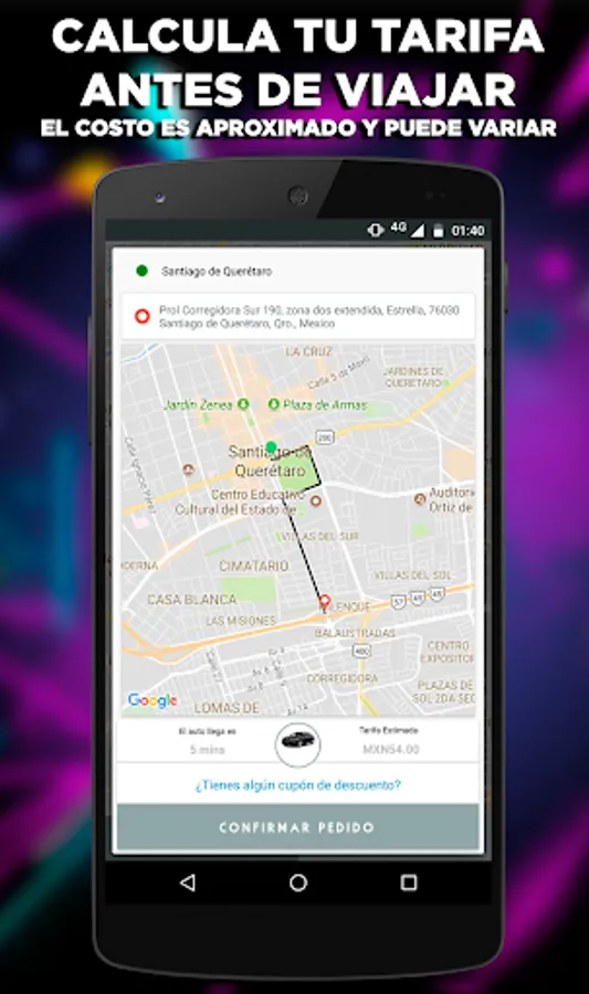 Safety is very important for us, that's why we only work with authorized drivers that you can know before getting in the vehicle, you can also observe how your car arrives in real time. You will receive a notification when your driver arrives, so there is no need to be waiting in the street.