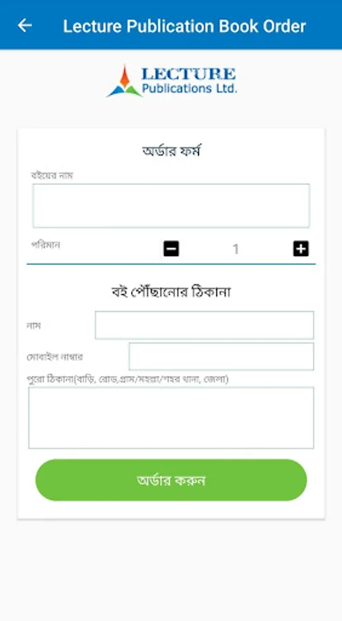 Lecture Books App gives you an easy access to "Lecture Books order service" from your android mobile phone. You can track your books once ordered. We always offer fair price. To buy books, select your education system, select class, select group, select books, provide delivery details & it’s done.