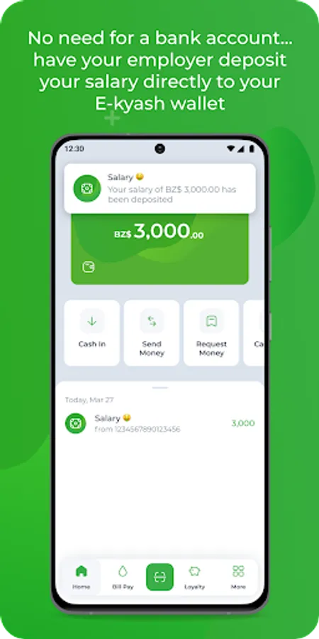 E-kyash allows your employer to deposit directly to your wallet without the need to have a bank account. Using their existing salary payment method, they input your phone number directly into the account number field and process their salary. You will be instantly notified of your Salary Deposit.