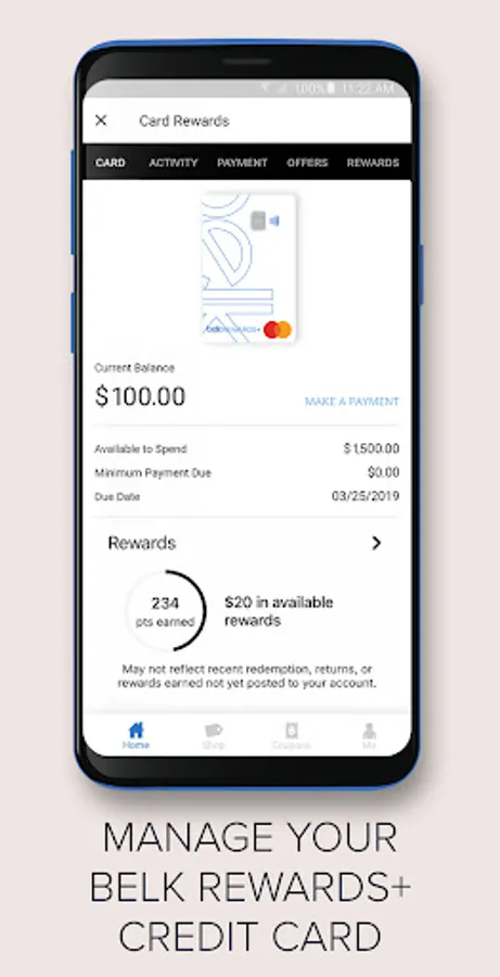 Manage your Belk Rewards credit card account easily from the app. Plus, see how many Belk Reward Dollars you have available to spend and apply them easily at checkout.