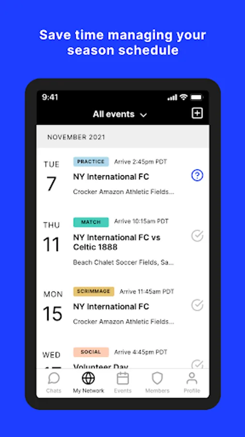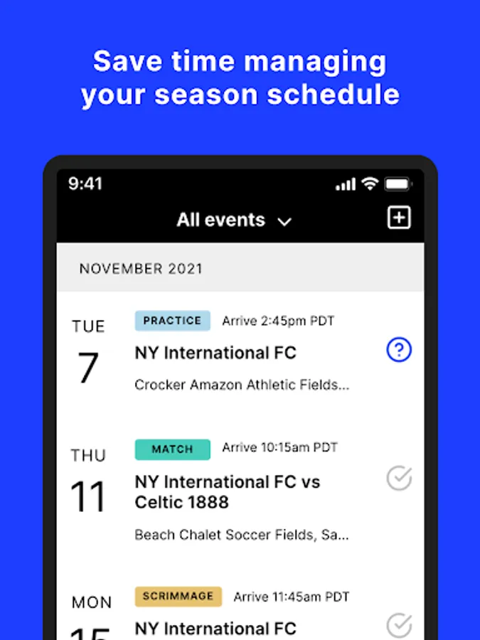 - Easily set up games, practices, scrimmages, pickups, and social events