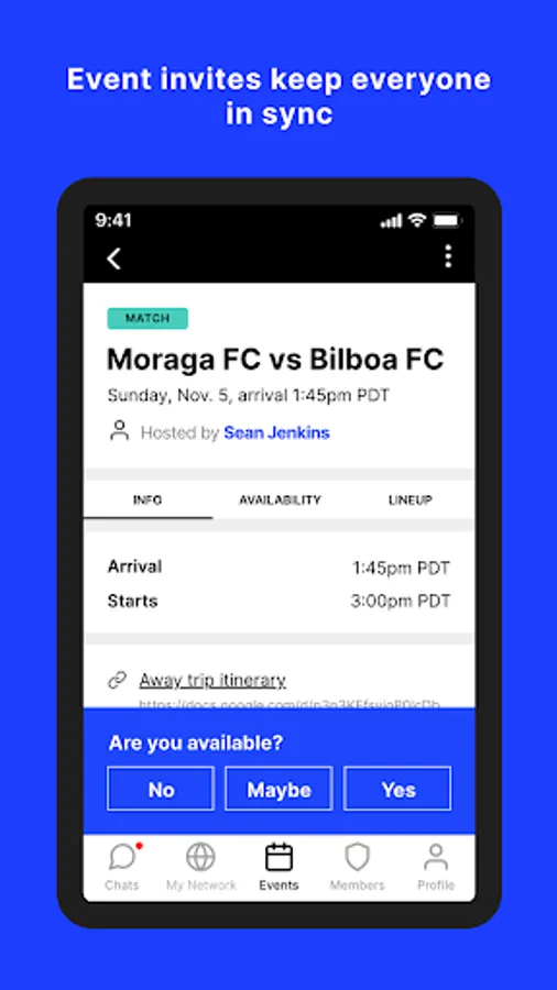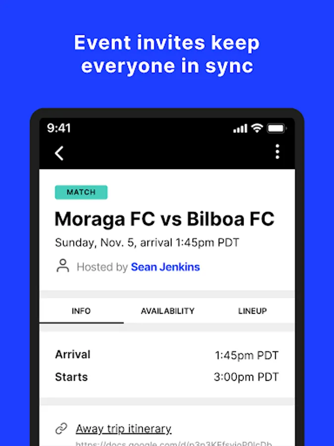 Configura fácilmente juegos, prácticas, y eventos sociales.