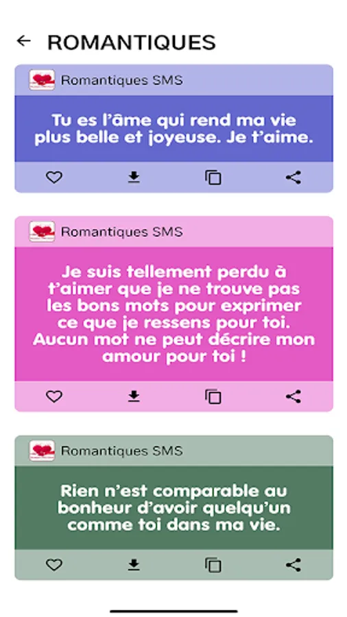 In short, "SmS D'Amour en français" is a romantic application that allows you to express your deepest feelings using poetic and touching words.