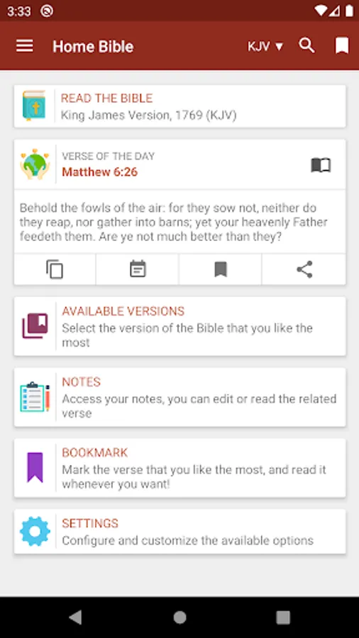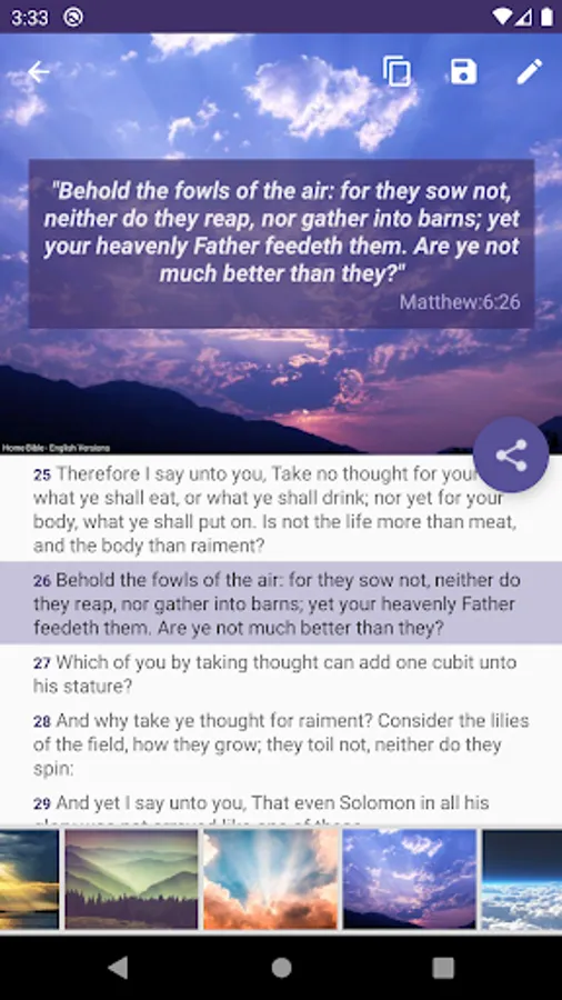 - Share verses on your networks or to your contacts by selecting inspiring background images