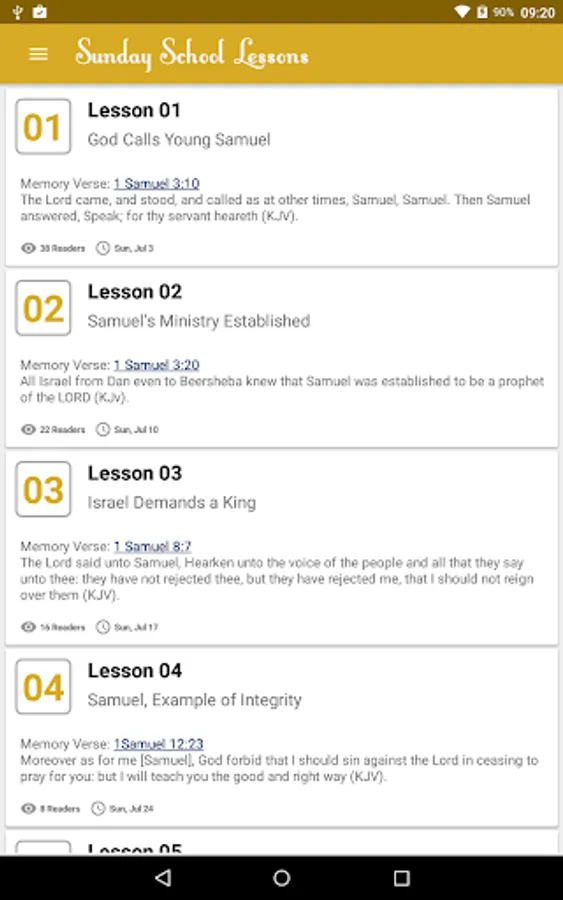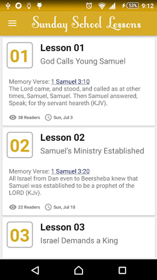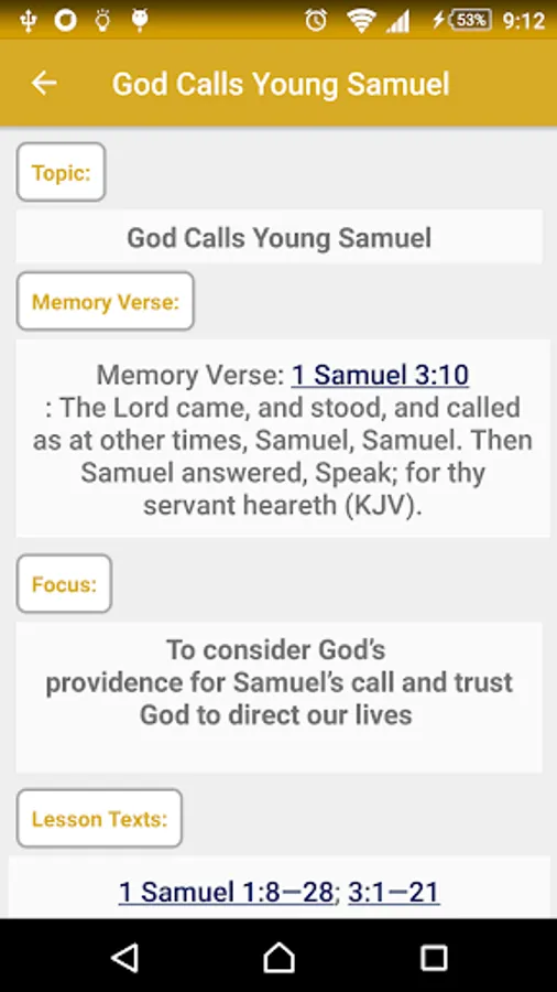 *Sunday School Lessons now has Bible Api Integrated, so you can simply click on the Bible link and it will load the Bible verses for you so with your device you have your lessons and your Bible too.