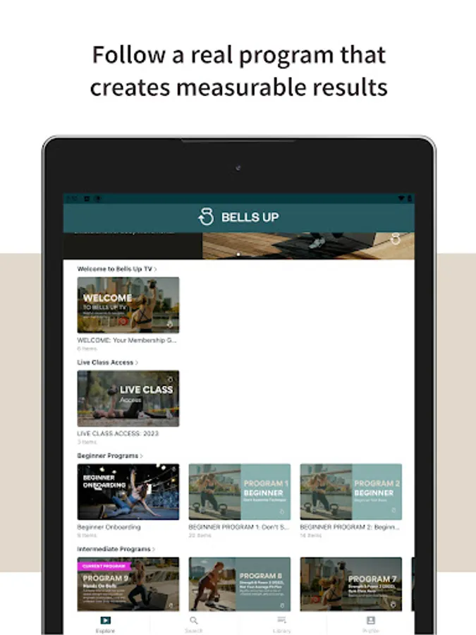 Bells Up memberships give you the flexibility to follow a program of recorded beginner, intermediate and advanced level strength training classes using mostly kettlebells and your own bodyweight. Stop doing hundreds of classes you need to pick and choose from; let us guide you through a real program that creates measurable change over time.