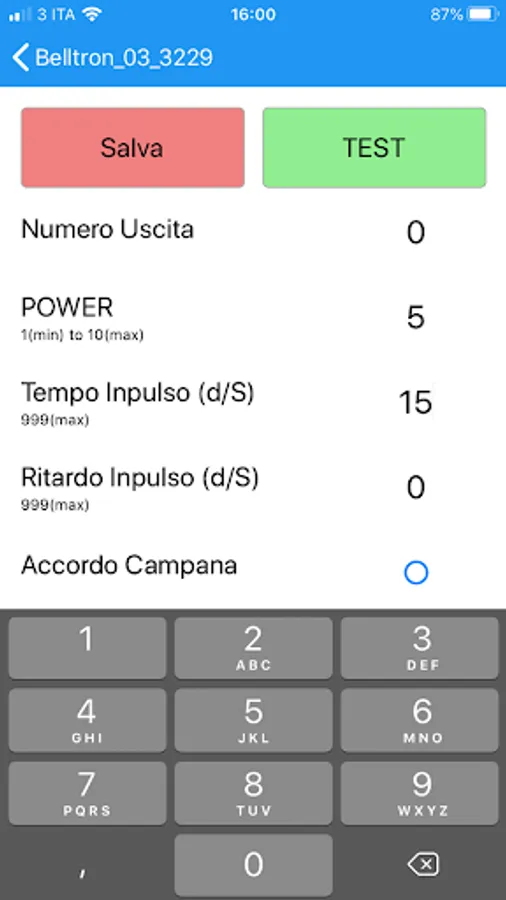The application allows a complete management of the motors and electromagnetic strikers for a perfect reproduction of the melodies.