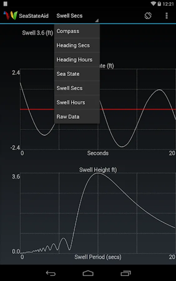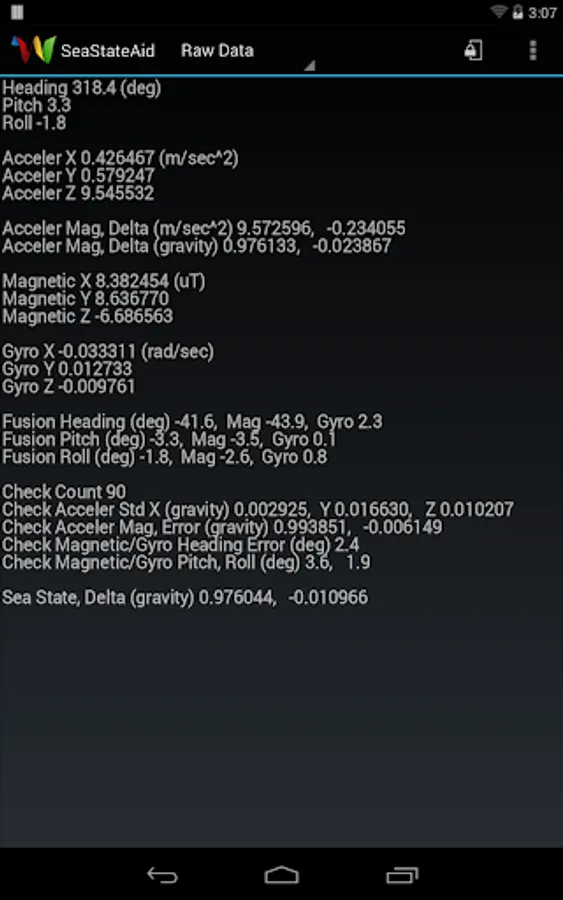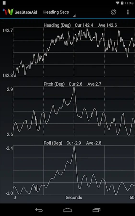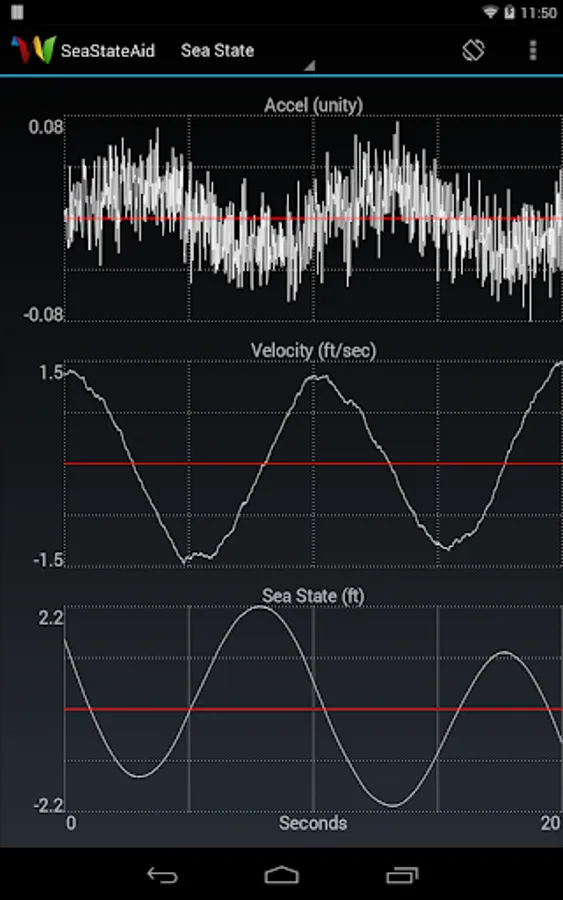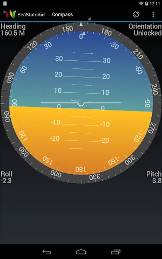 Real-time display of sea state, compass and artificial horizon on phones and tablets.