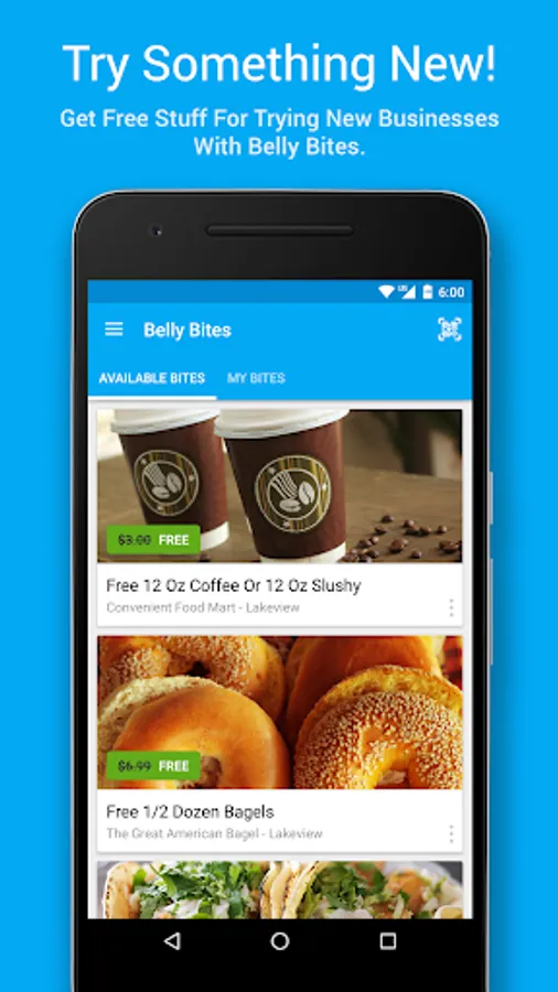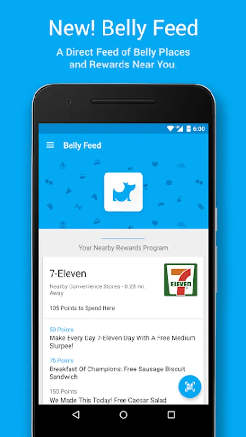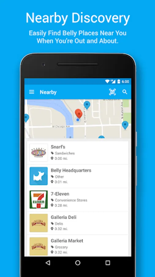 With Belly, we offer one customer loyalty card to replace the rest. Link the mobile app to your physical BellyCard which can be picked up at any Belly Business. Use the app's "Nearby Places" feature to find locations to Belly when you're out and about on the town. Earn a free cup of coffee at the donut shop down the street. Name the Sandwich of the Month at your local deli. For the first time, you can have your cake and eat it too, or at least have the option of shoving it into your baker's face.