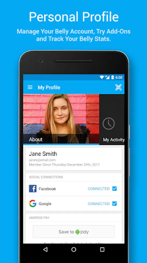 Use your Google+ account to register with Belly! Keep your accounts connected for an easier user experience.