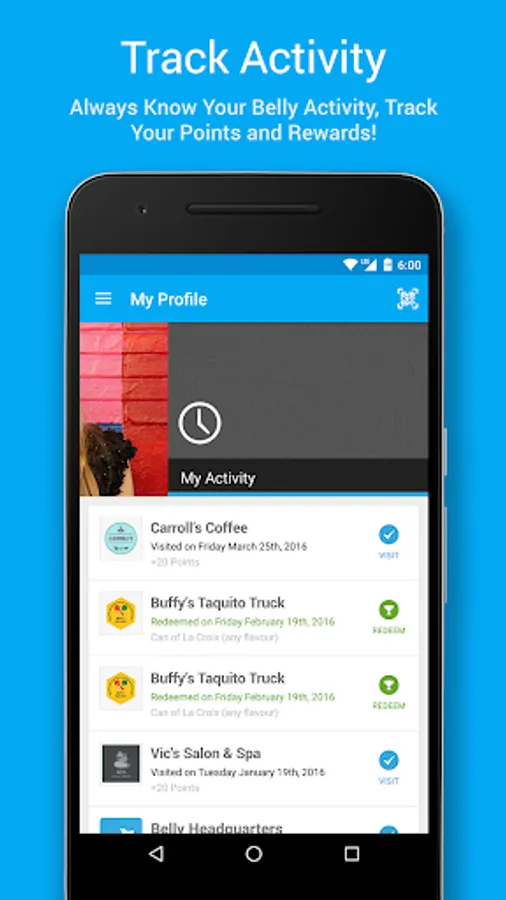 Belly is a universal loyalty program that offers one-of-a-kind rewards at the businesses you love, replacing boring "Buy 10, Get 1 Free" punch cards with free stuff you actually want. Belly Members scan their BellyCard or app at the in-store tablet, earning points that are redeemable for rewards unique to each Belly Business.