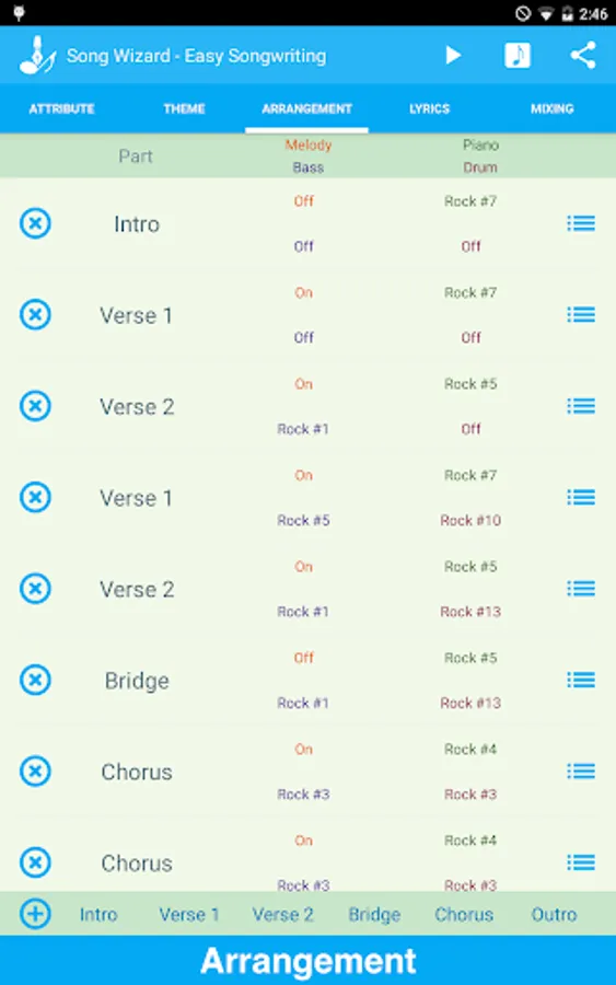 “Songwriting Wizard” will constitute themes for verse 1, verse 2, and chorus. It will automatically generate chord progression and melody suitable for each part.