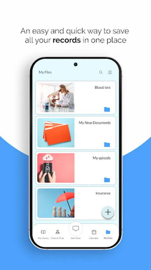 - The ability to organize and manage your records and documents on your device and share them easily with family and healthcare providers.