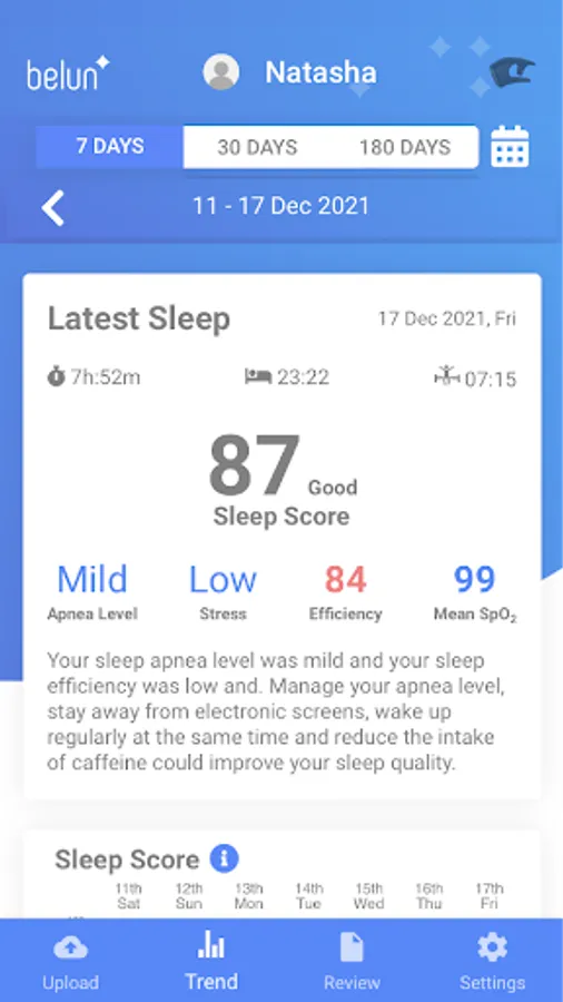 Derived from different sleep parameters to help you understand your sleep quality at a glance.