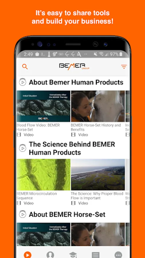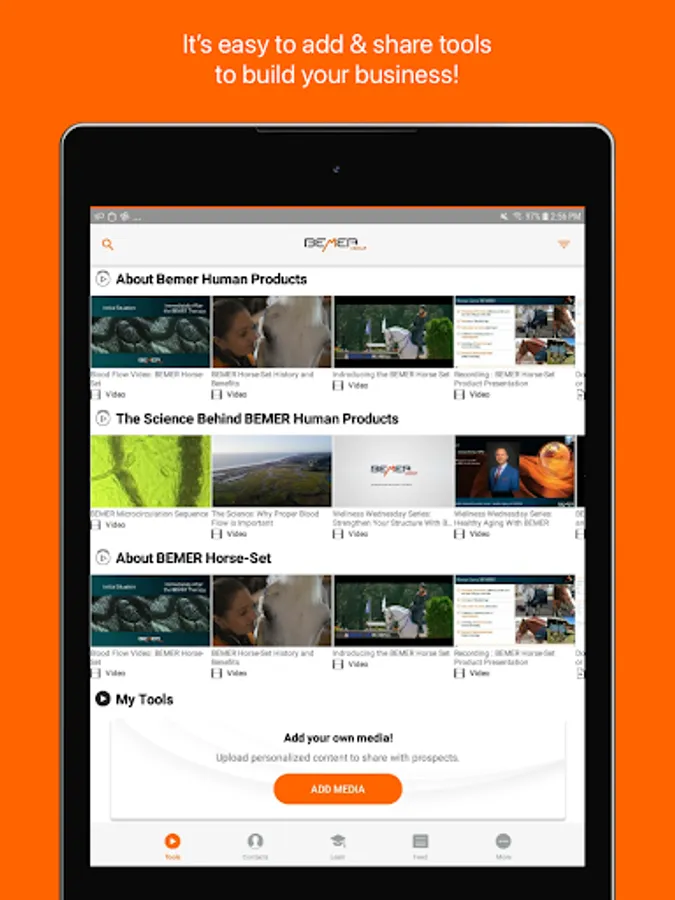 With the BEMER Share app, you can easily share your way to success with tools that create word-of-mouth buzz and complement belly-to-belly efforts! Connect with new contacts and interact with your team by sharing exclusive, corporate-approved tools. You’ll have a vast array of marketing materials like videos, images, and more—all right at your fingertips! The powerful, yet beautifully simple design, along with compelling tools, makes growing your business simpler than ever.