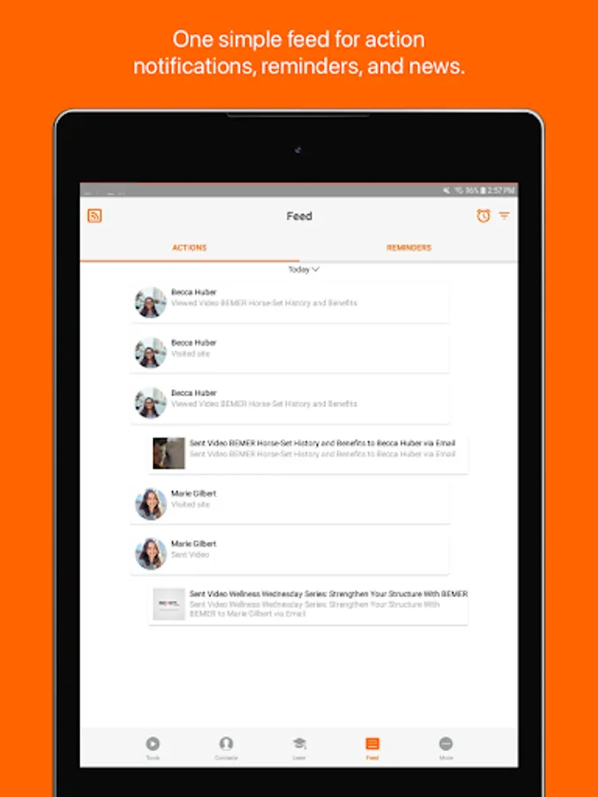 Contacts: Choose how to sync and manage your contacts. Swipe to sort them by interest level. You can make connections, add notes, or check out the Contact Feed to see the tools you’ve shared and contact actions.