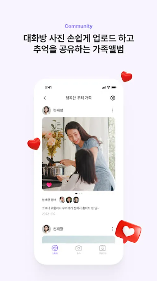 가족 앨범: 가족대화방에 초대된 가족들과 추억을 공유하세요.